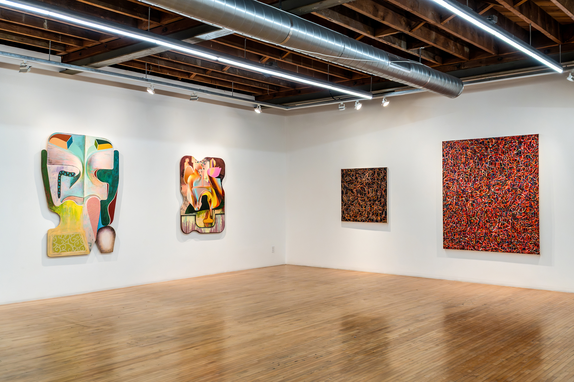The exhibition features four artists, each of whom trained at a different Los Angeles art school: Gary Paller (UCLA), David Lloyd (CalArts), Dena Novak (Otis), and Alex Parrasch (Claremont Graduate School). Each artist approaches abstraction through a highly individual path, collectively highlighting the breadth of strategies currently shaping this discourse.