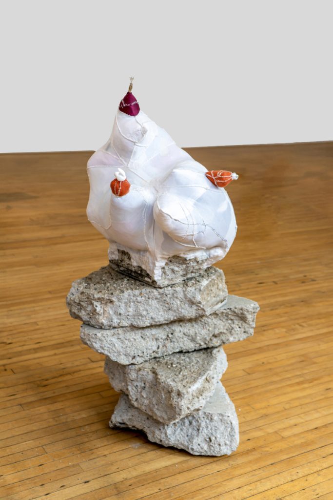 These material transformations invite a reconsideration of how we assign value to what is discarded. The sculptural forms, their awkward, semi-transparent stitched skins, interrogate notions of domesticity and the hidden aspects that lie beneath the surface of our lives.